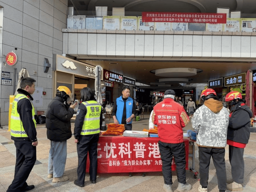 提升骑手群体的交通安全意识是城市精细化管理的重要举措。活动现场,杨林交警大队民警化身安全讲师,结合冬季道路特点和骑手职业特性,重点讲解了防滑、防疲劳、夜间可视性提升及路口风险防范等实用技能。县科协科技志愿者同步开展生活科普,围绕冬季健康防护、应急处理、智能设备使用等主题,通过互动问答、资料发放等方式,传递“身边的知识”,助力骑手群体安全从业、智慧生活。