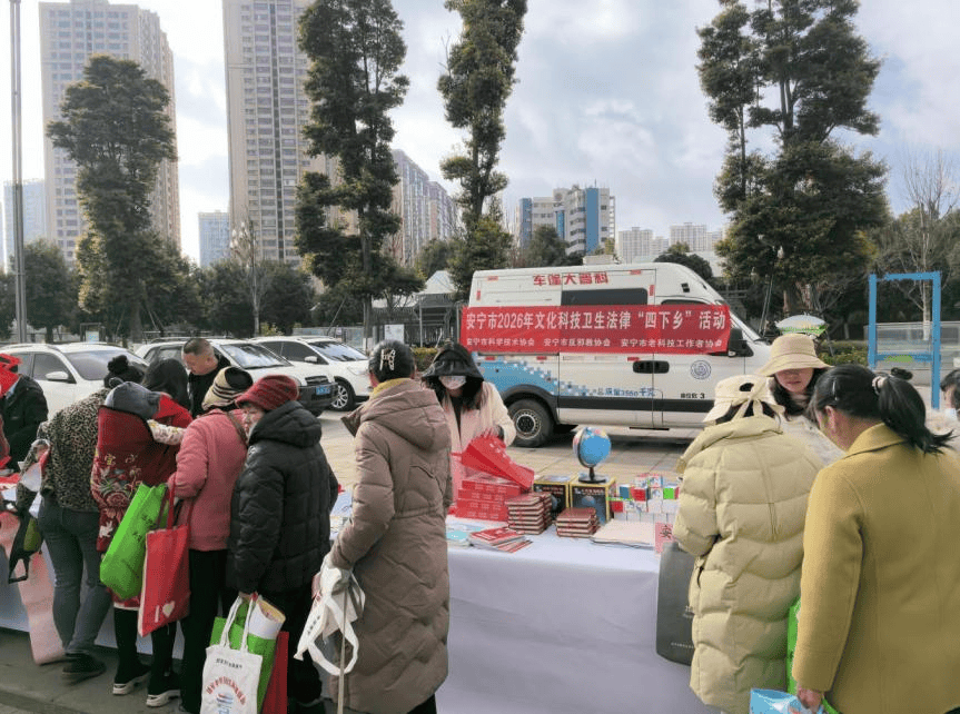 1月9日,安宁市科协积极参与安宁市在人民广场开展的2026年文化科技卫生法律“四下乡”活动,为市民群众送上暖心科普服务。