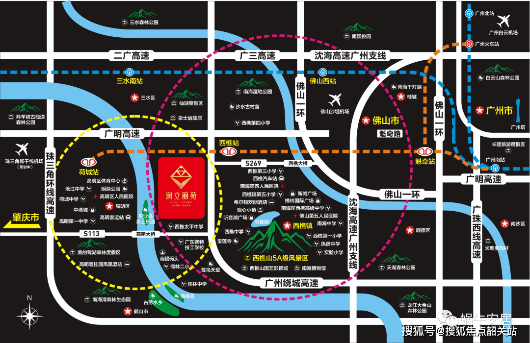 高速出行方面,项目拥有极为便捷的高速通达性,5分钟内即可驶入广州环城高速,10分钟可直达广明高速,两大高速路网纵横交错,串联起广佛两地及周边城市。从项目出发,约20分钟车程可直达南庄、禅城、丹灶、高明等区域,满足日常跨区通勤需求;30分钟内可直达狮山、罗村、桂城等南海核心板块,轻松享受南海区的优质资源;约40分钟可直达广州、江门等城市,无论是商务出行还是周末探亲、出游,都极为便捷。随着珠三角枢纽机场的建设推进,项目的交通优势将进一步凸显,未来跨区域出行将更加高效。
