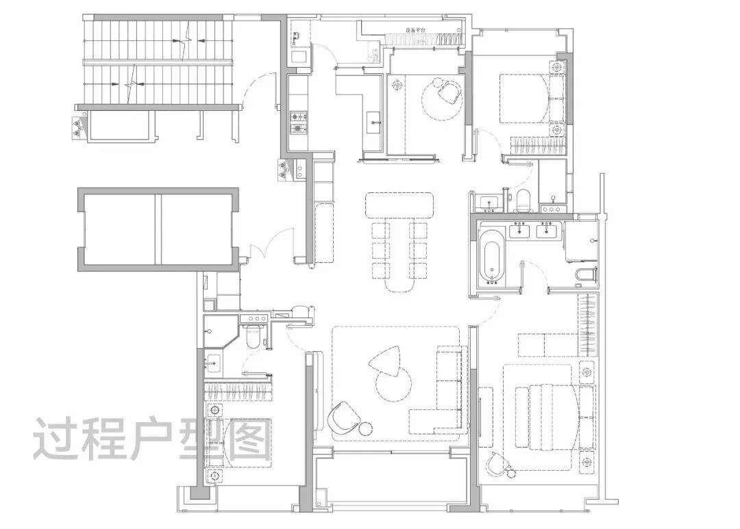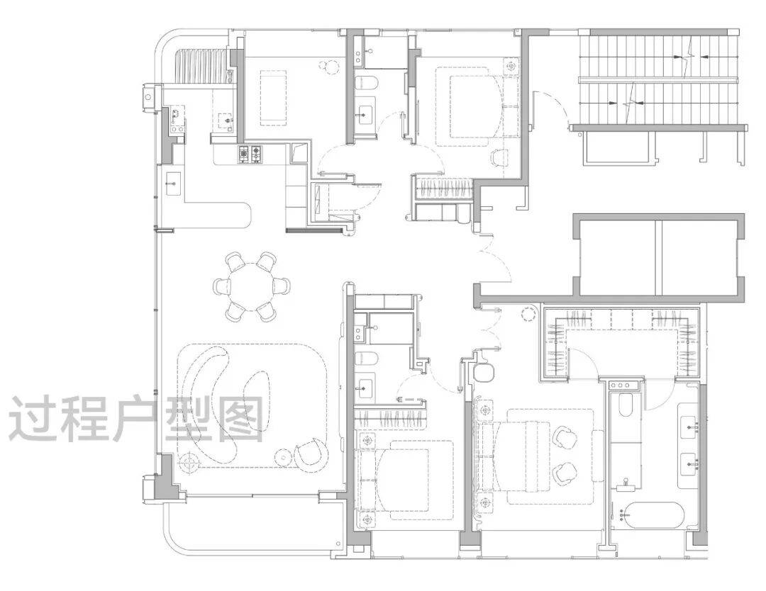 主卧大套房设计带超大主卫和衣帽间,面积约50㎡,尺度感与市面上近300㎡的顶豪拉平。