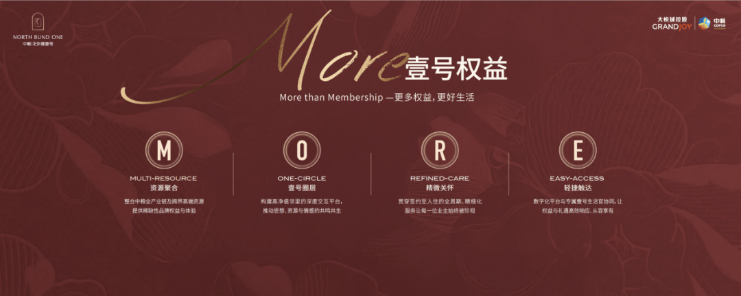 3月27日,中粮·北外滩壹号举办「壹味・知己」媒体发布会,中粮信托、中粮长城、中茶融通、中英人寿等中粮系各板块领导共同出席,正式发布了“MORE壹号权益体系”。这一举措释放出明确信号:中粮·北外滩壹号的业主,即将拥有的,是整个中粮“舰队”的至高礼遇。
