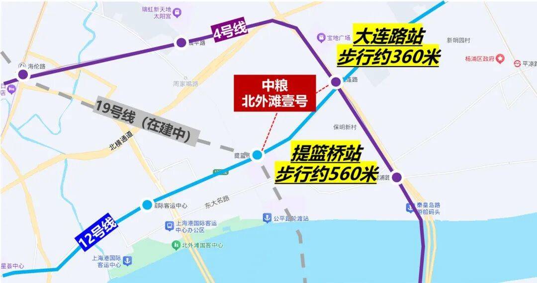 交通方面:项目周围环绕三条地铁,步行约360米到4、12号线号线(在建)提篮桥站。