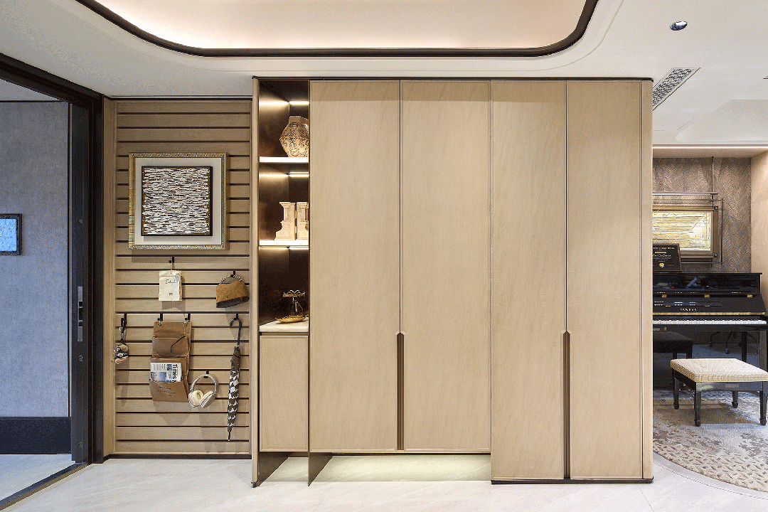 室内入口玄关,保利做了金属吊线预留挂画位,业主可以在这里打造玄关个性化装饰设计,让每个家庭都能根据自身喜好打造专属家居氛围,进一步彰显家庭格调与居住品味
