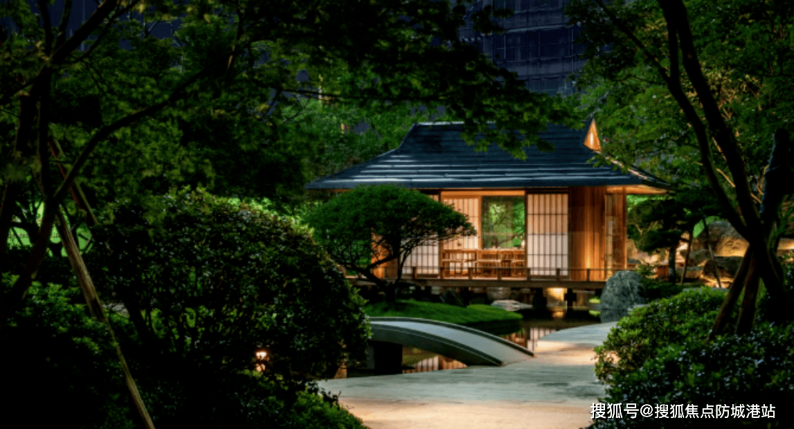合景臻颐府社区内部园林由日本著名设计师小林政彦操刀,打造“四谷三庭”日式禅意园林。这种设计风格强调自然与人文的和谐共生,追求极简、宁静、雅致的意境。